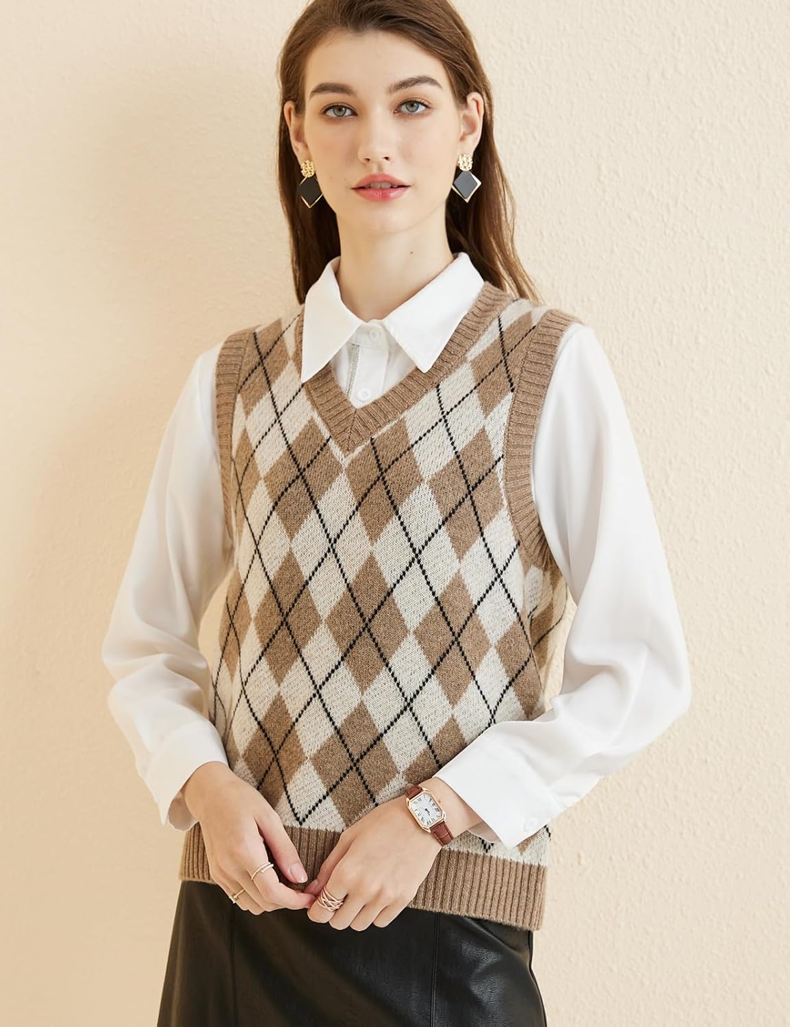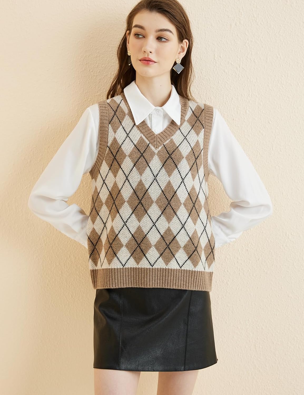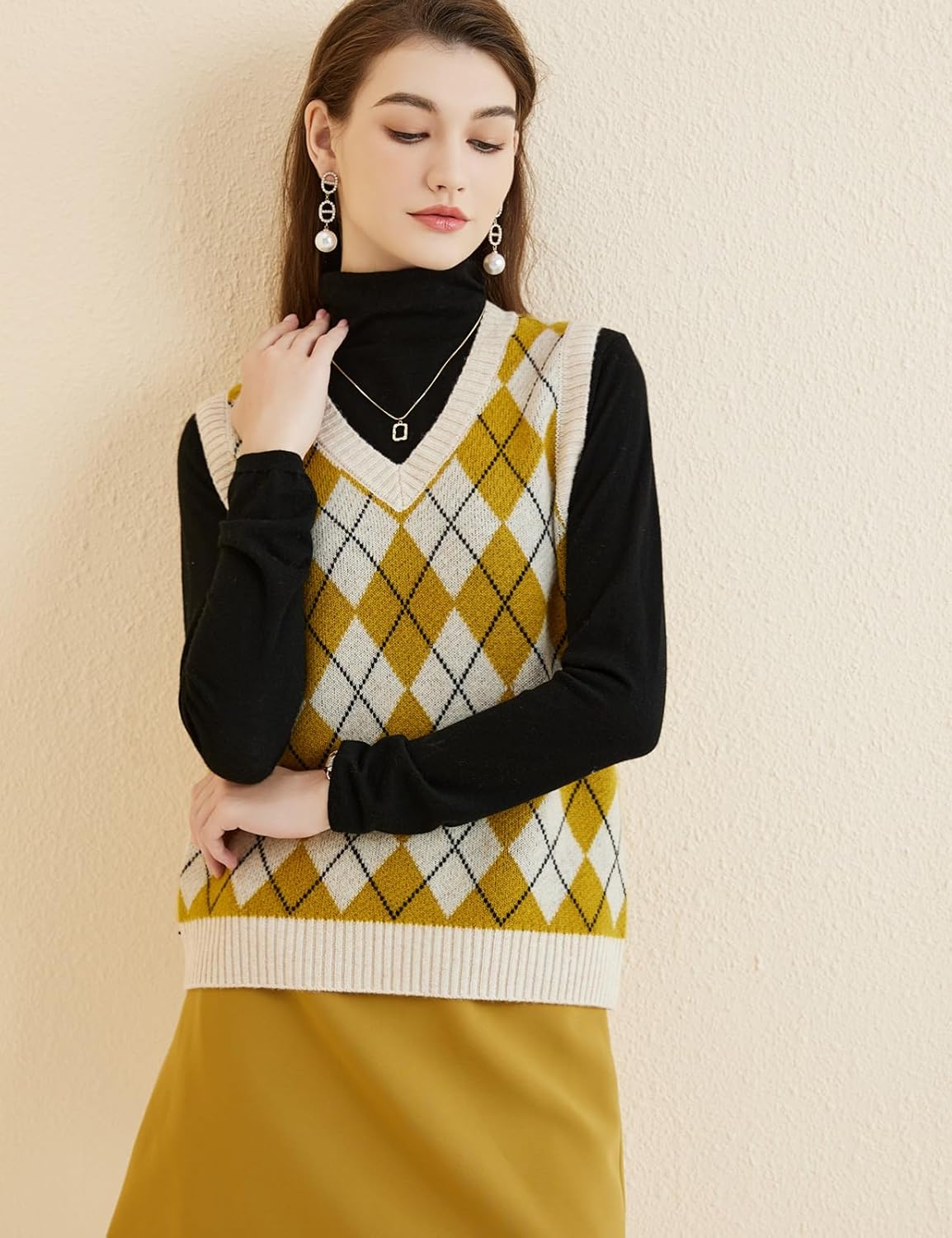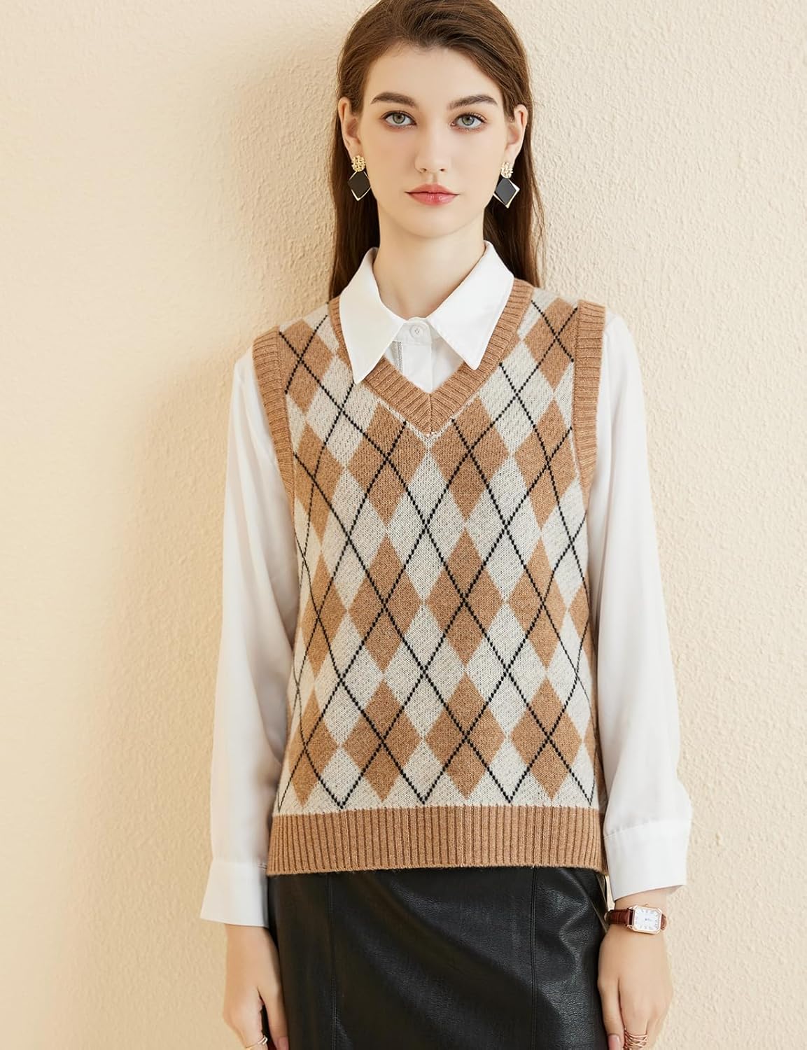 This is a nice, soft sweater vest. The pattern looks nice. Not sure what makes this a women’s sweater vest. The style and patttern are more like many traditionally men’s sweater vests.